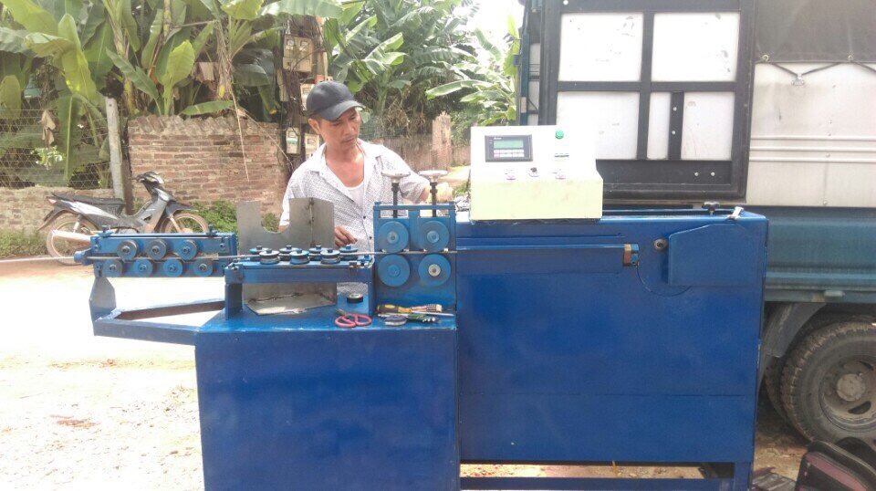 - Nhấn nút nhấn ‘START’ trên tủ điện để chạy máy, sản xuất sản phẩm đai sắt.